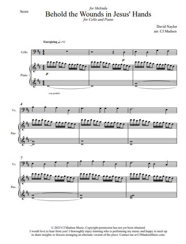 Behold the Wounds in Jesus’ Hands – Cello and Piano – 2025