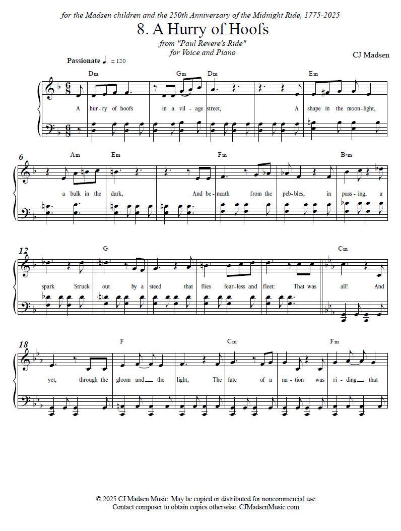Paul Revere’s Ride, VIII: A Hurry of Hoofs – Piano and Voice – 2025