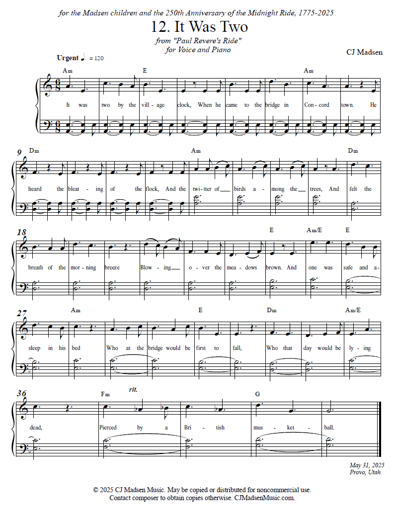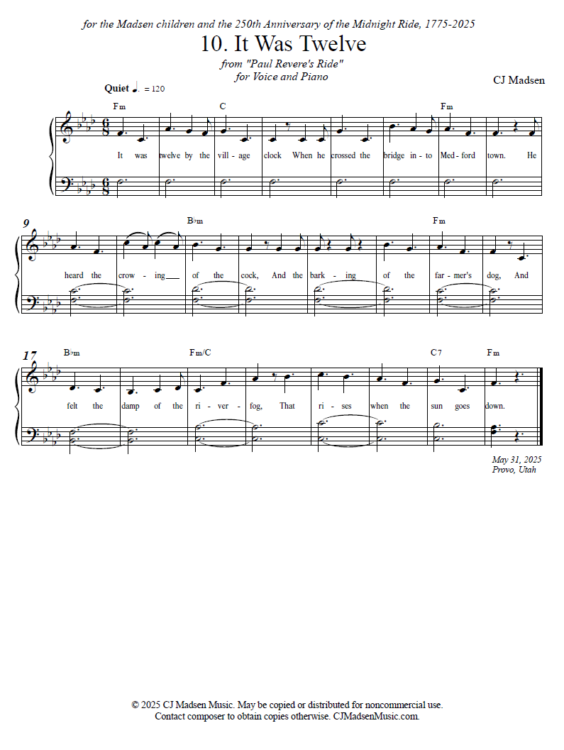 Paul Revere’s Ride, X: It Was Twelve – Piano and Voice – 2025