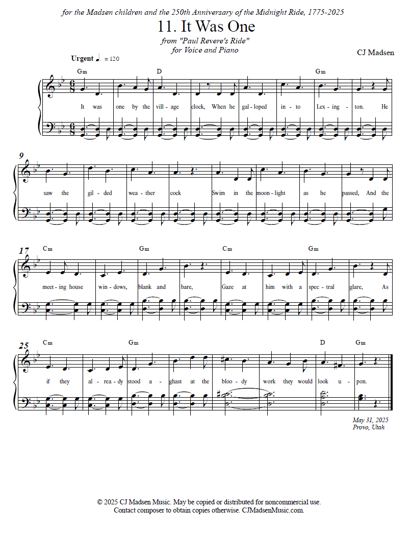 Paul Revere’s Ride, XI: It Was One – Piano and Voice – 2025
