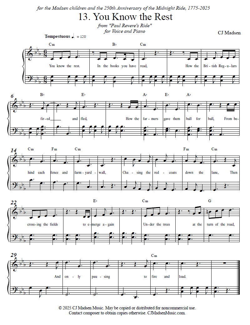 Paul Revere’s Ride, XIII: You Know the Rest – Piano and Voice – 2025