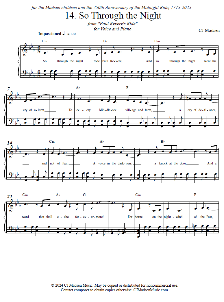 Paul Revere’s Ride, XIV: So Through the Night – Piano and Voice – 2025