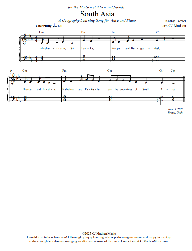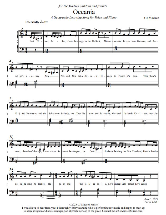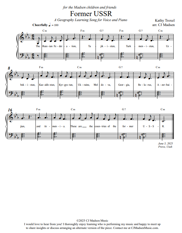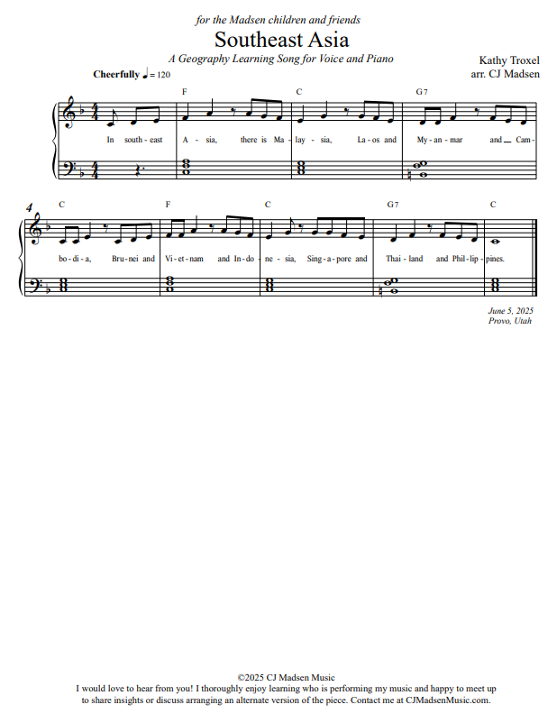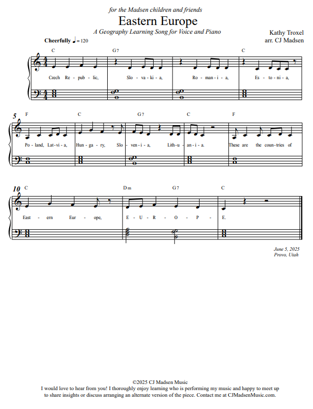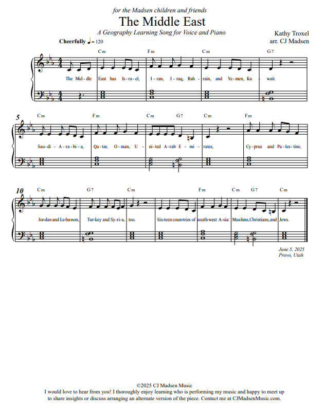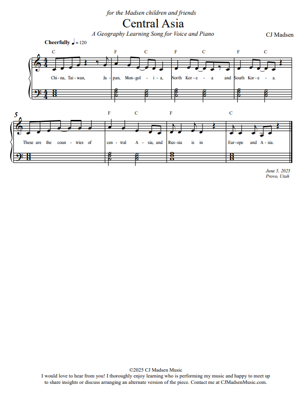 Over the past decade, I have written a variety of songs specifically for my children – either for them to sing or to play. As these have brought me great joy, I share these songs with the world in the hopes that they will be helpful in teaching children wonderful scriptures and educational principles.