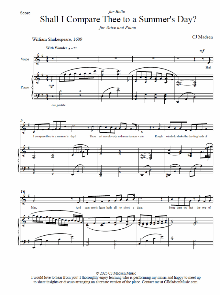 *Shall I Compare Thee to a Summer’s Day – Voice and Piano – 2025