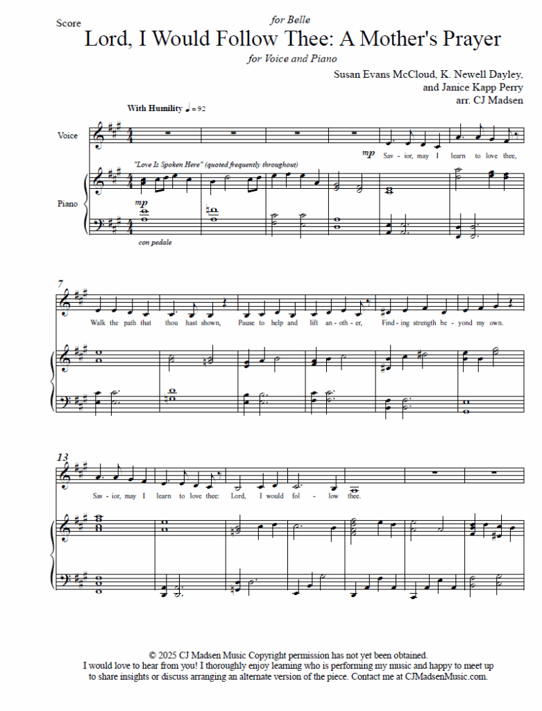 *Lord, I Would Follow Thee: A Mother’s Prayer – Voice and Piano – 2025
