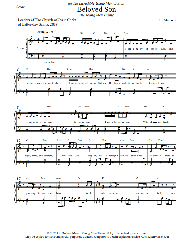 *Beloved Son (Young Men Theme) – Vocal Solo and Piano – 2025