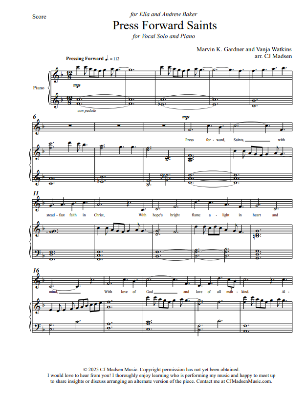 Press Forward Saints – Vocal Solo and Piano – 2025