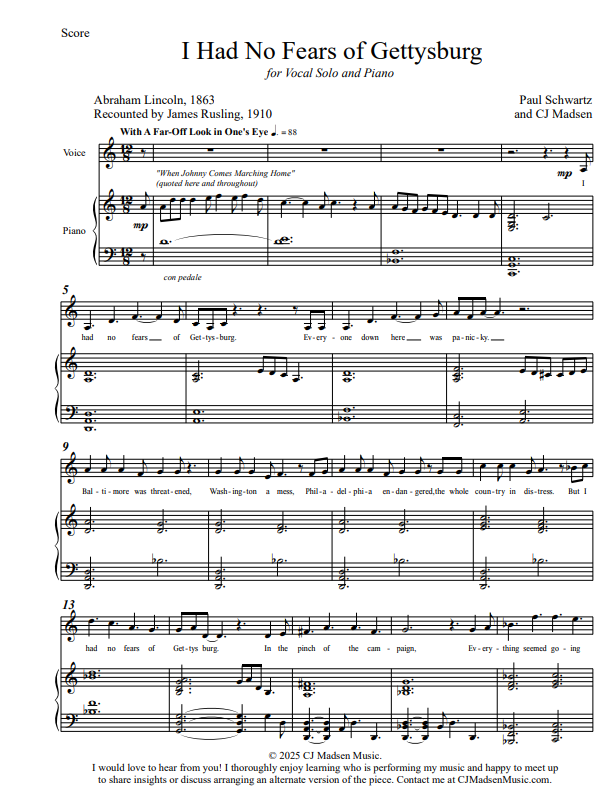 *I Had No Fears of Gettysburg – Vocal Solo and Piano – 2025