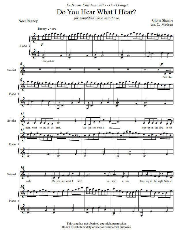 Do You Hear What I Hear – Simplified Voice and Piano – 2025